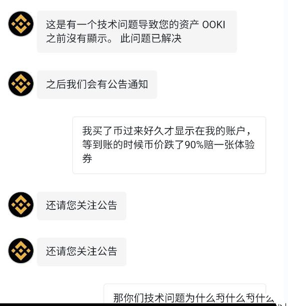 官方解释说是技术问题,我真的想为那些技术团队鸣不平,他们真的是背锅侠,一有问题就扯技术。那既然是技术问题,那损失部分应该由平台承担吧,可是币安怎么做的,给用户补偿vip+1体验券?这个不就相当于我买东西要退你却给我换一样是同一个道理吗?所以说这个币安是真的狗。